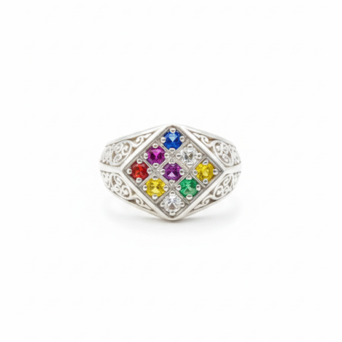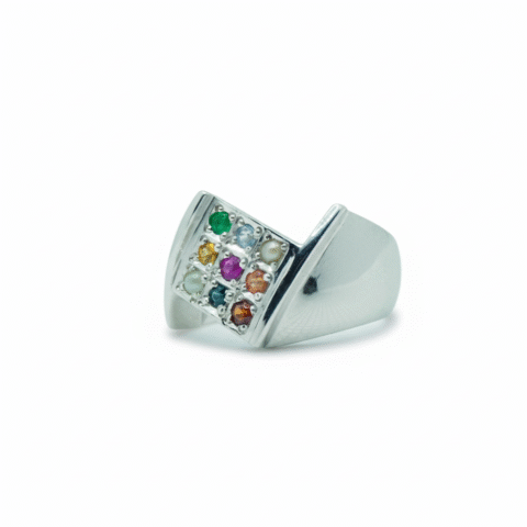 Men’s 925 Silver Navaratna Ring (LS-S-NV-MR-009)