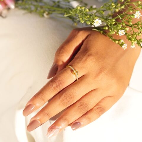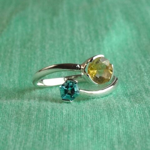 Ladies 925 Silver Citrine Triangle Spring Ring (LS-S-CTR-LR-015)