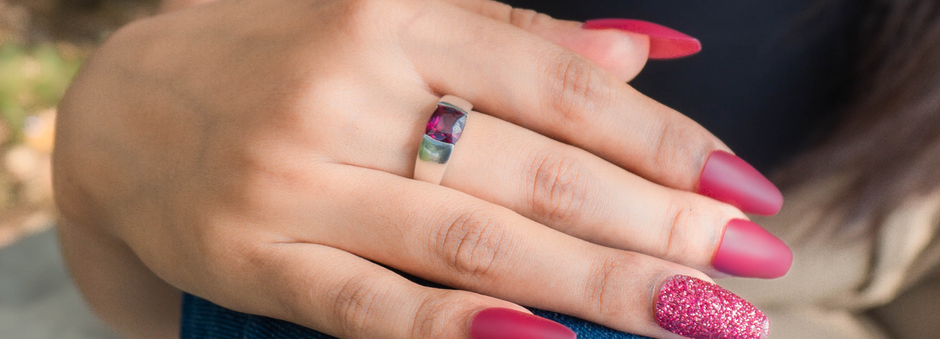 Ladies 925 Silver Garnet Pear Spring Ring (LS-S-GR-LR-015)