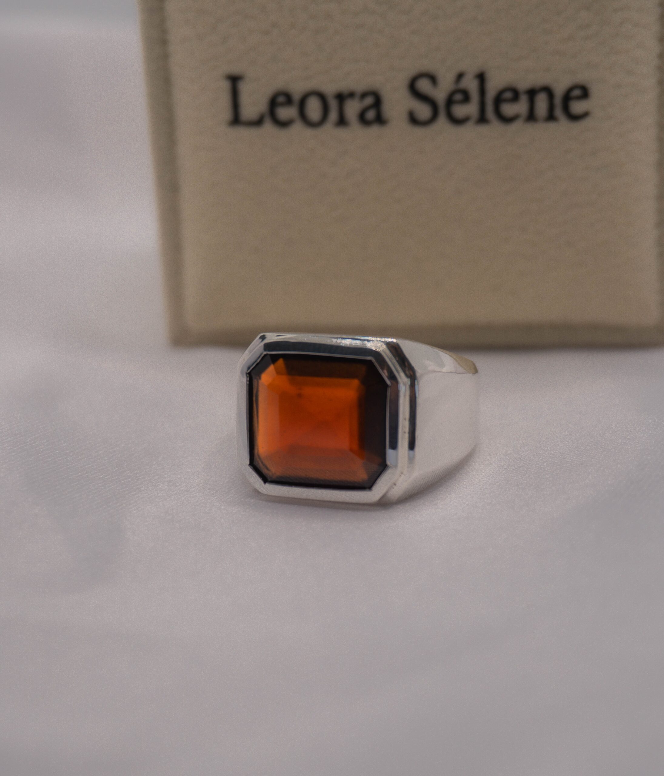 Hessonite Garnet Men’s 925 Silver Ring (LS-S-HG-MR-008)